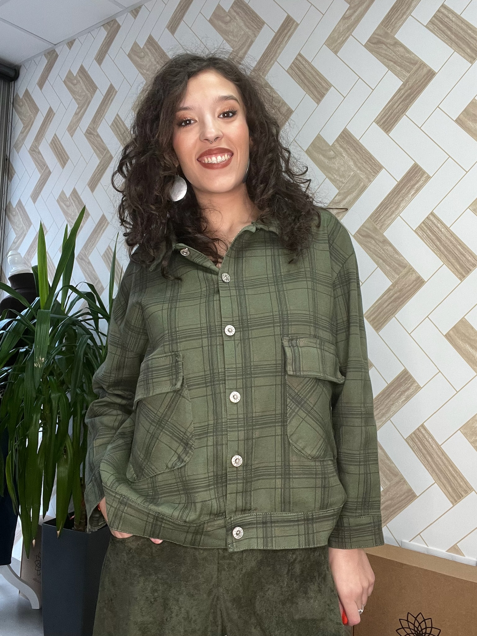 Chaqueta estilo vaquero con estampado de cuadros cierre de botonera y bolsillo vertical